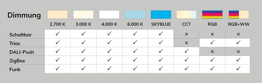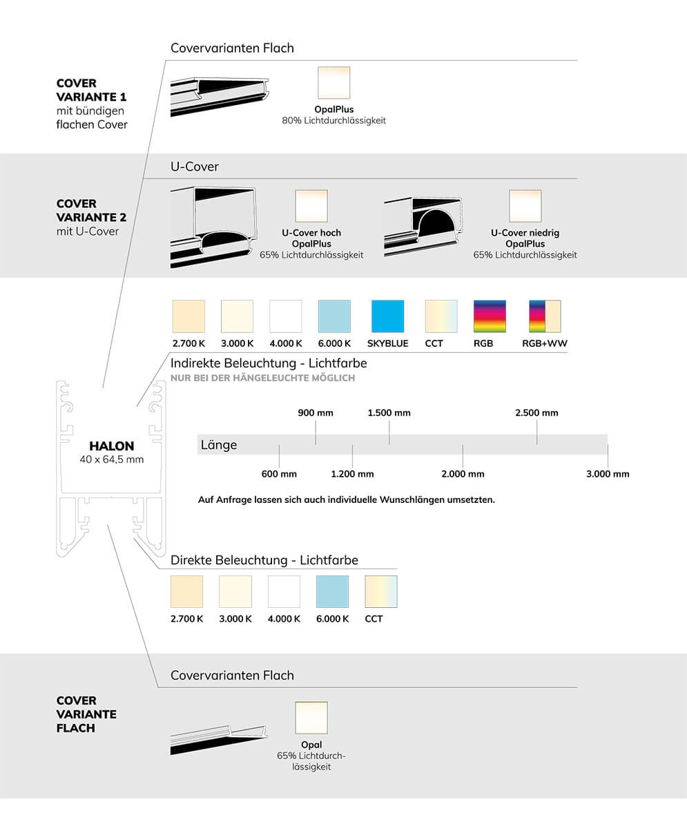 - Breite Auswahl an Dimmvarianten, Licht- und Profilfarben sowie Abdeckungen: Gestalten Sie die Beleuchtung ganz nach Ihrem Geschmack.