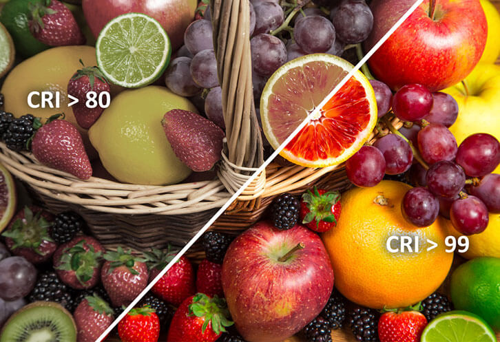 Der CRI-Wert von 100 entspricht dem Farbspektrum von natürlichem Sonnenlicht auf der Erdoberfläche.