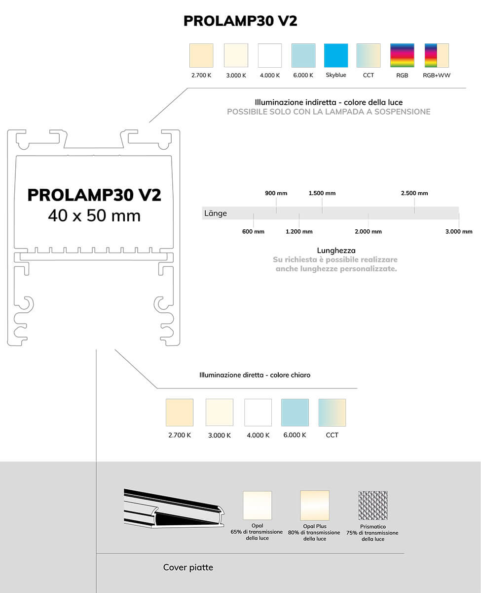- Ampia scelta di varianti di dimmer, colori della luce e del profilo, e coperture: Personalizzate l’illuminazione secondo i vostri gusti.